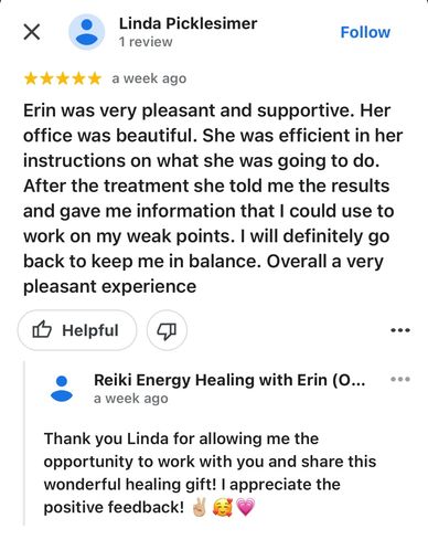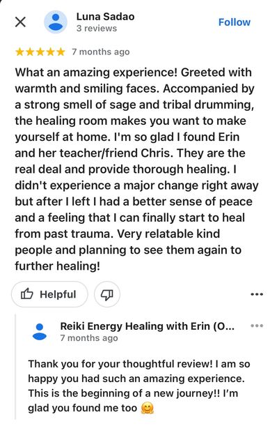 My name is Erin. I am a Reiki energy worker and medical clairvoyant. I re-balance chakras and specialize in full Reiki healing sessions. I use light touch to balance the bio field. I work with your vibrational energy field and universal energy in order to encourage emotional, spiritual and physical healing. Reiki allows the release of trapped negative energy, blockages and past trauma. This is an alternative form of therapy which helps heal the mind, body and spirit!